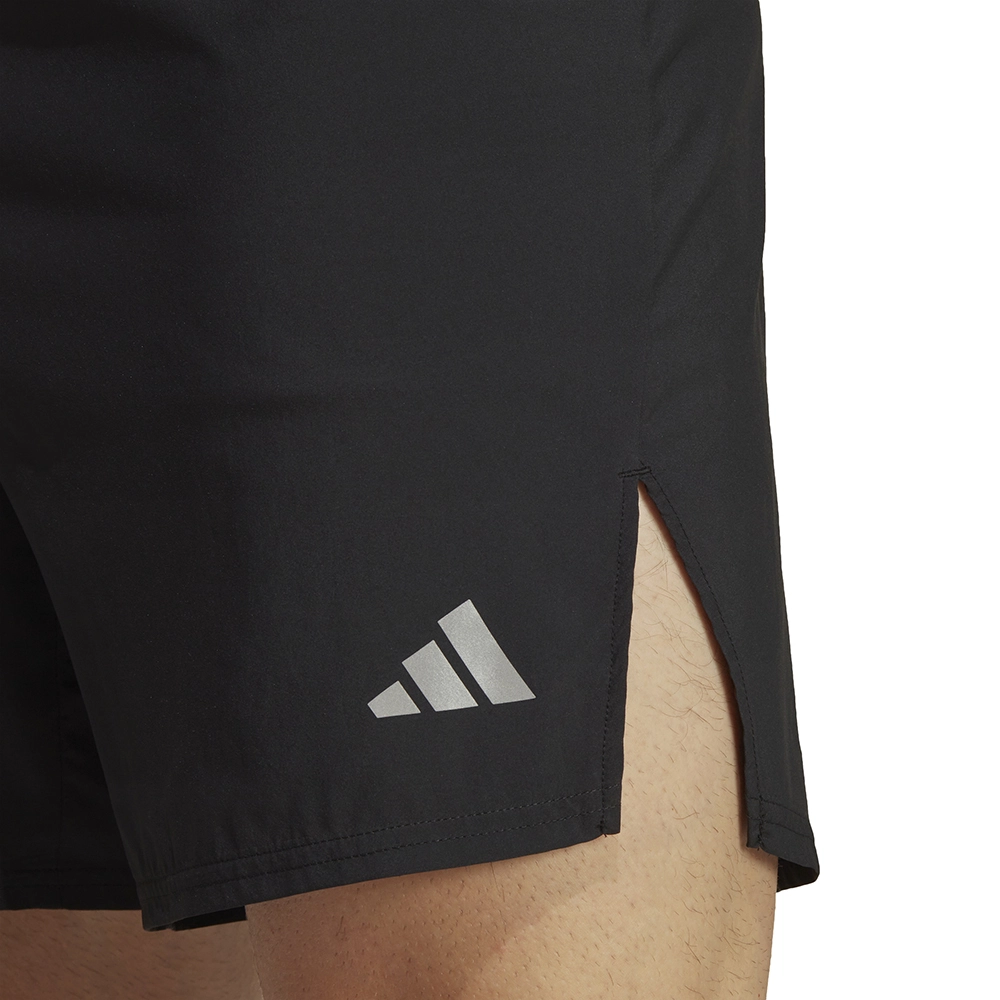 Crafted from lightweight fabric, the Own The Run Cooler Shorts from adidas are highly breathable to keep you cool and well-ventilated throughout your run. Featuring moisture-wicking AEROREADY technology, these shorts do an excellent job of quickly managing sweat so you remain dry and comfortable. Designed with an inner brief that adds support and notched side hems for full freedom of movement while a back zip pocket keeps your phone safe and secure. Made with 100% recycled materials to save resources and reduce waste.
